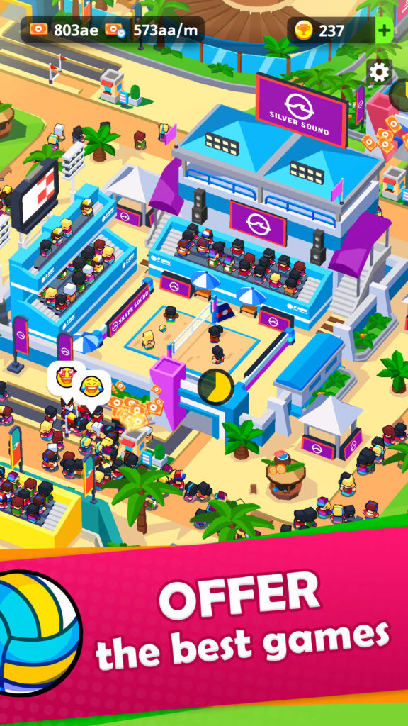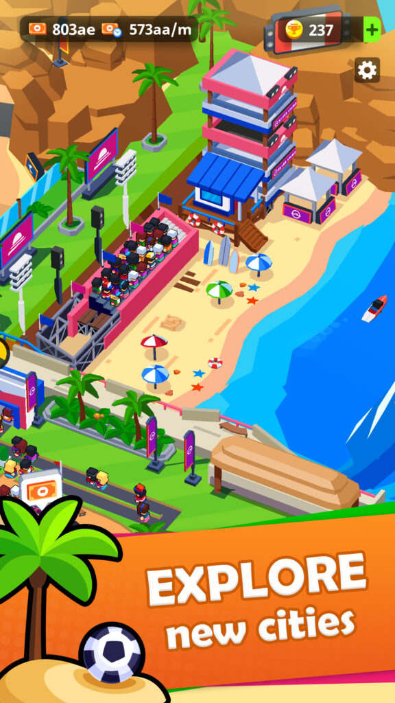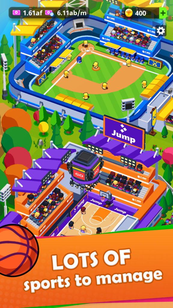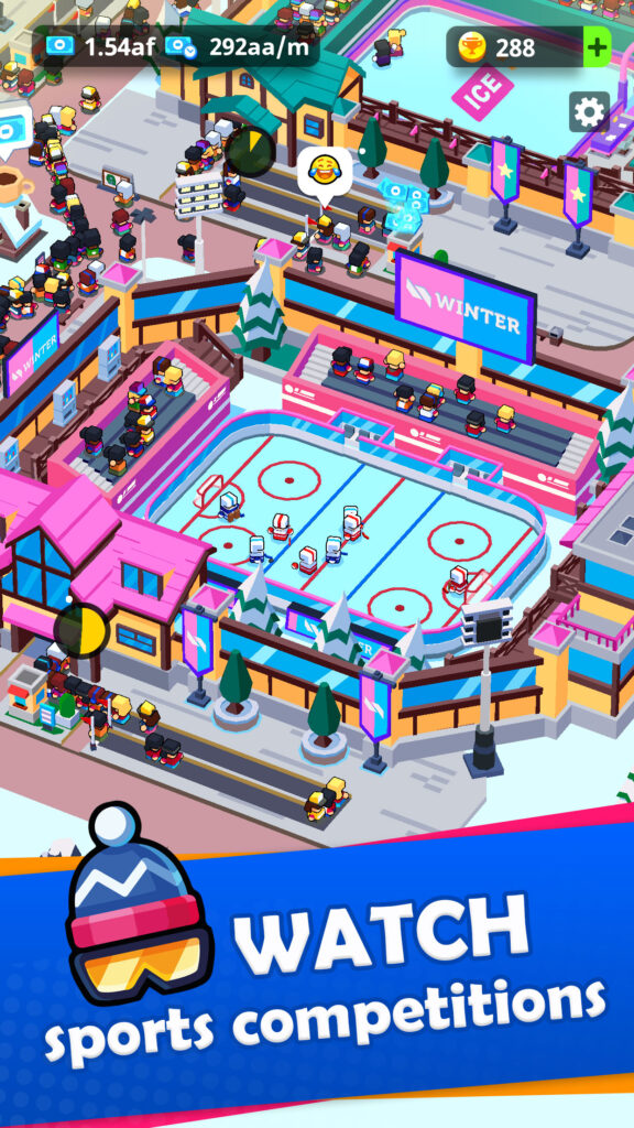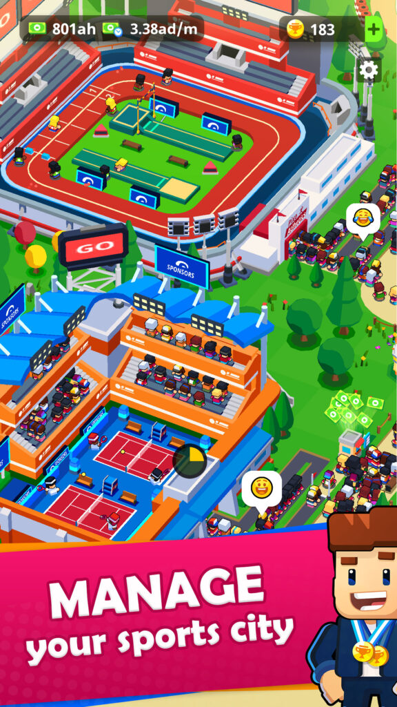 Start with a small stadium, get visitors into the town, and sell tickets to earn money to build even more stadiums! Manage and optimize resources like a sports management simulator and improve the games bringing more players to the field!